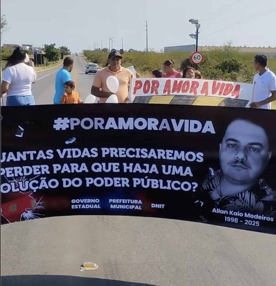 Após morte de jovem, moradores do Nova Mossoró protestam por instalação de semáforo na BR-304